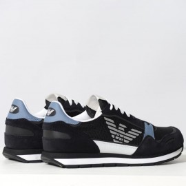 Sneakers uomo Emporio Armani in mesh e suede con dettagli a contrasto.