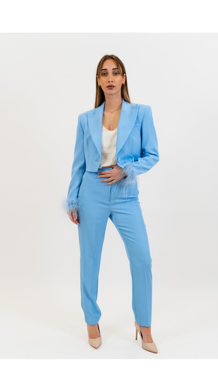 Silence Limited women's crop blazer, feather sleeves, solid color, slim fit. The model is wearing size XS.