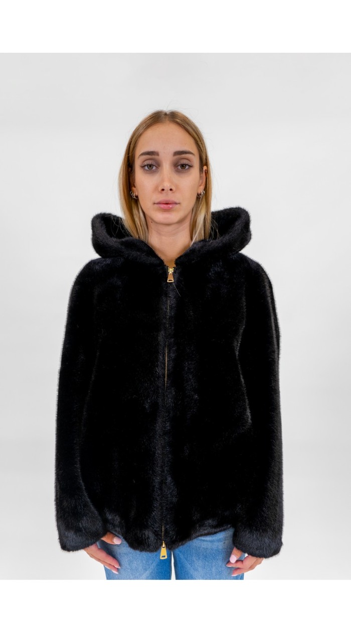 Dixie women's fur coat with fixed hood, short pile, zip closure, regular fit.