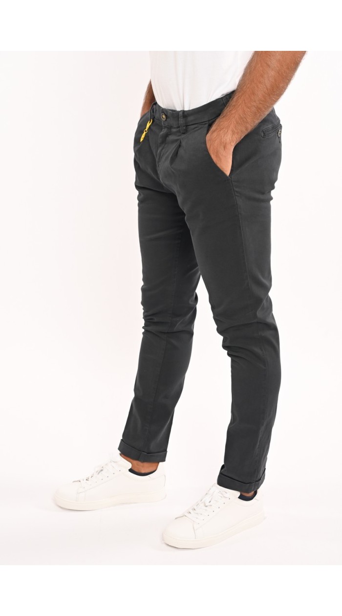 Manuel Ritz men's one-pleat slim fit garment-dyed pants. Two America pockets and coin pocket on front, two buttoned welt pockets on back, zipper and button closure, detachable logo key ring, 17-cm hem with turn-ups. Stretch cotton gabardine