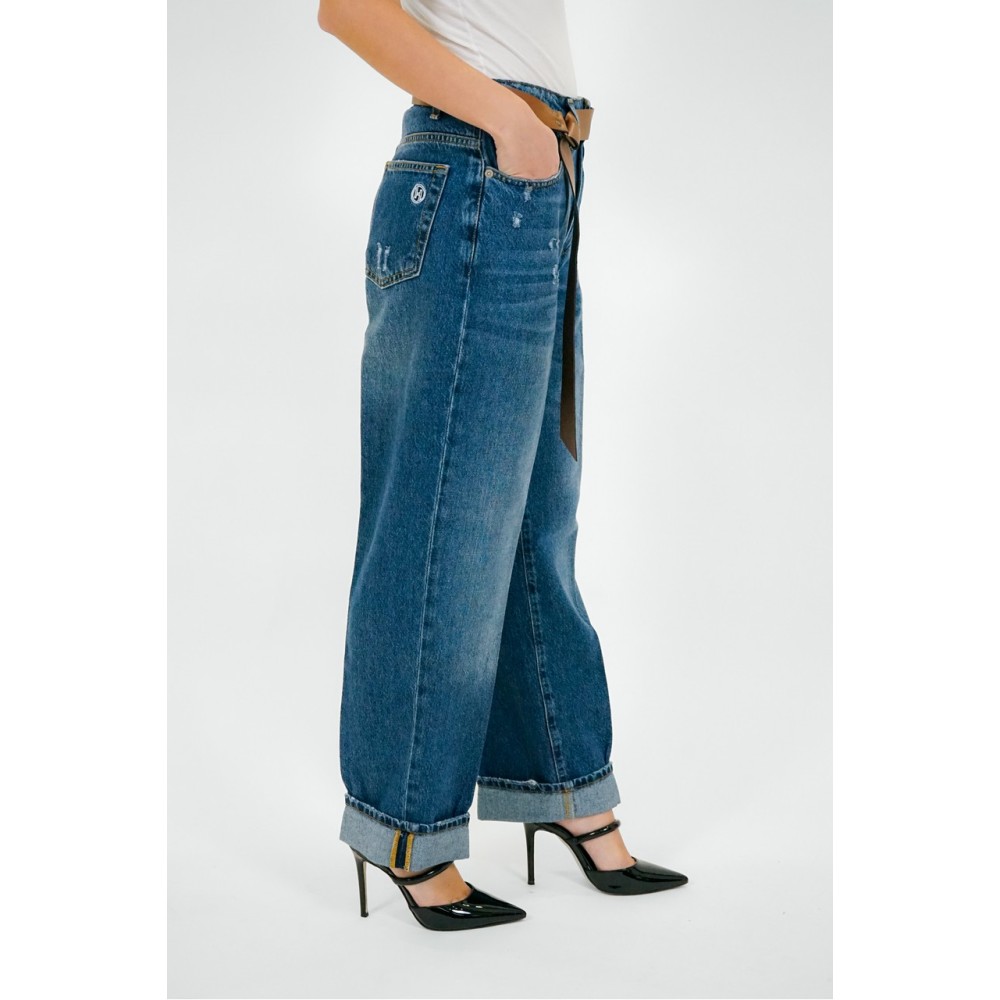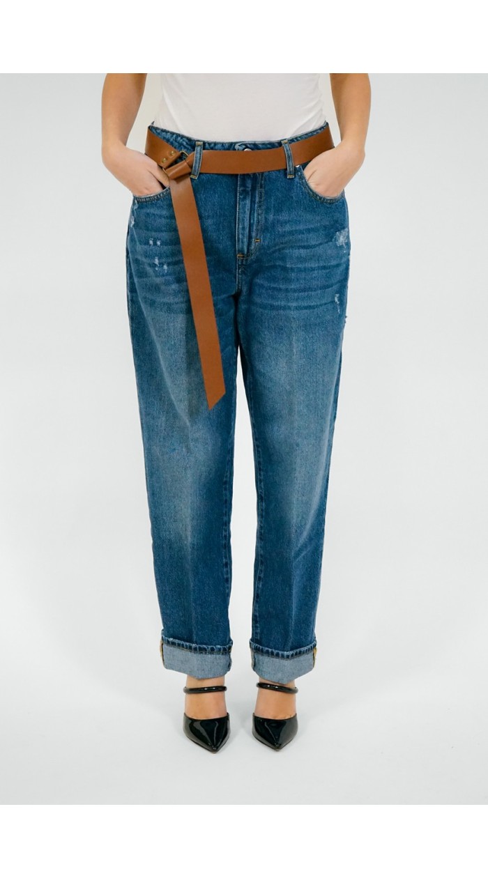 Women's momfit jeans. High waist, 5 pockets, waistband, zip and button closure.