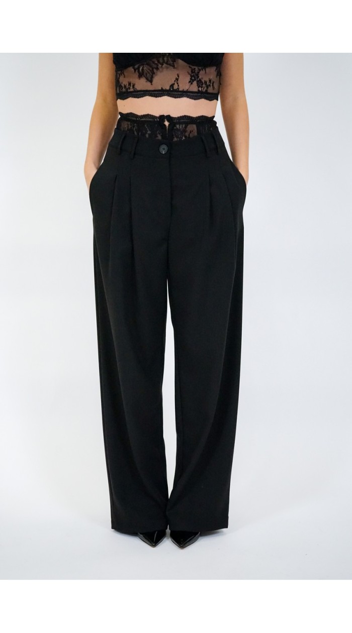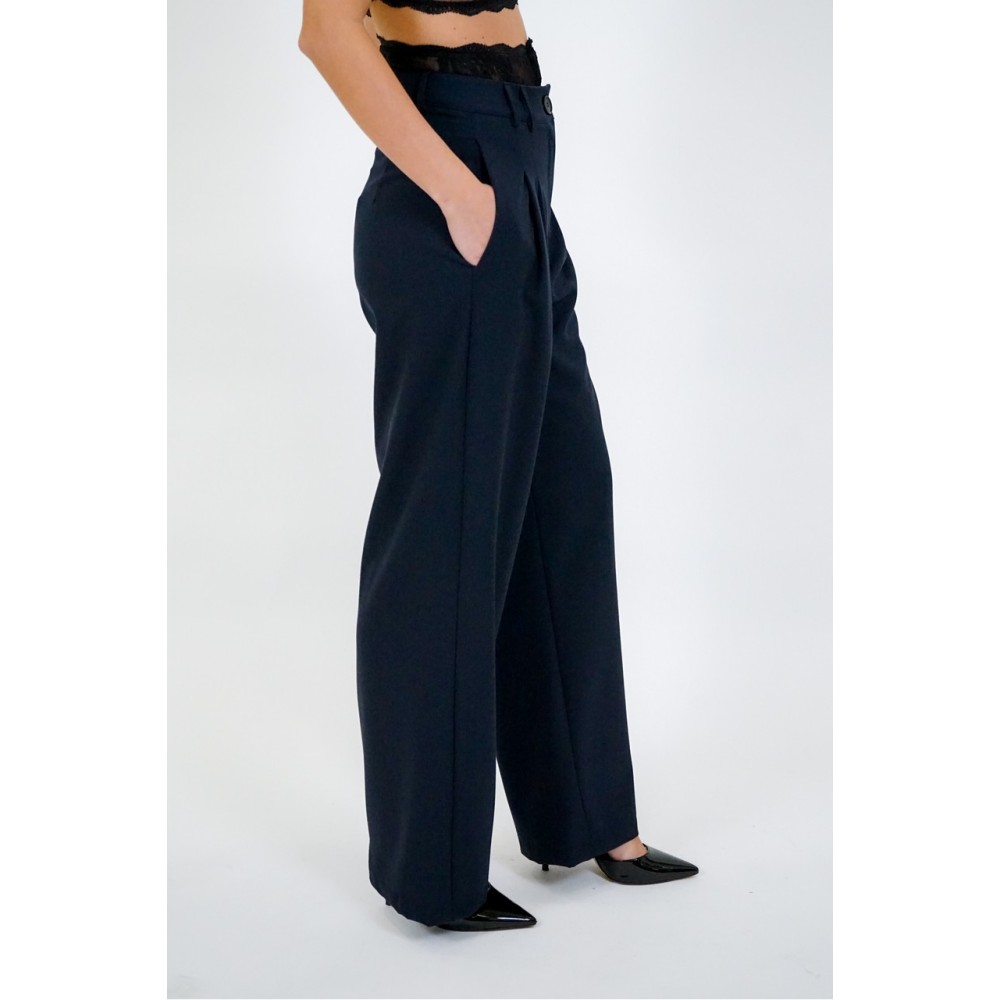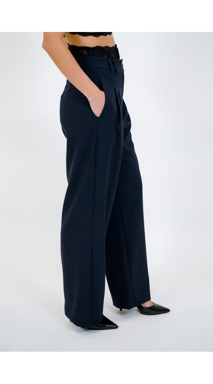 Haveone women's palazzo pants, lace detail at the waist, slash pocket, zip and button closure, high waist.