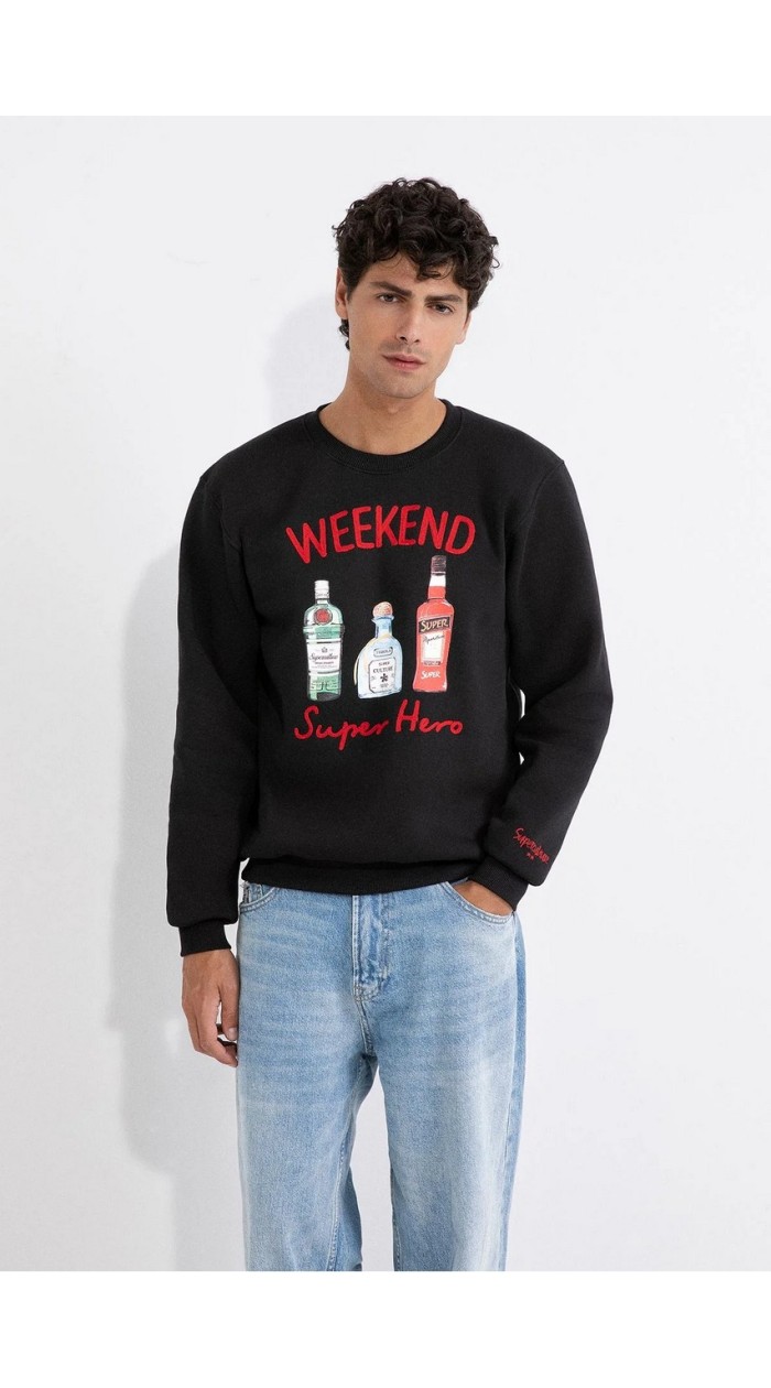 Superculture men's pullover Autumn Winter 2025-26, embroidery on the front Après ski courma, long sleeves, regular fit.