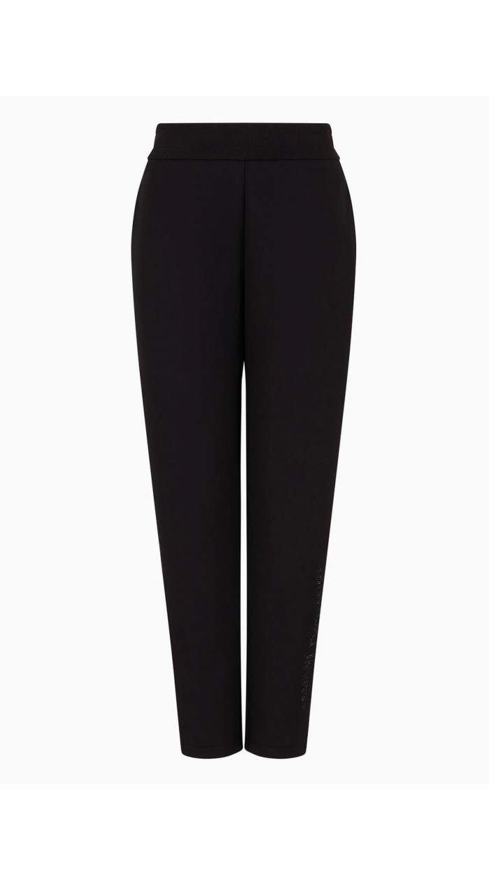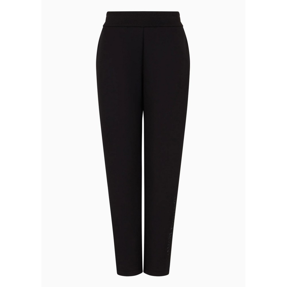 These jogger trousers are made of stretch fabric with a soft hand feel. The model features rhinestone embellishments that make up the Armani Exchange naming