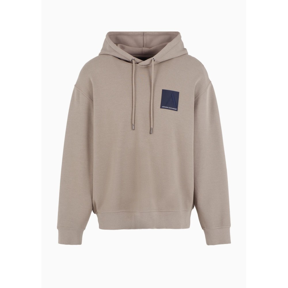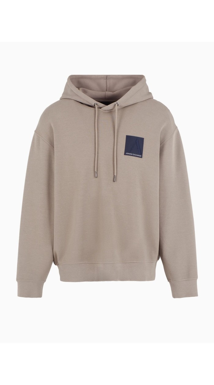 Armani exchange men's hooded sweatshirt, logo patch, solid color, regular fit.