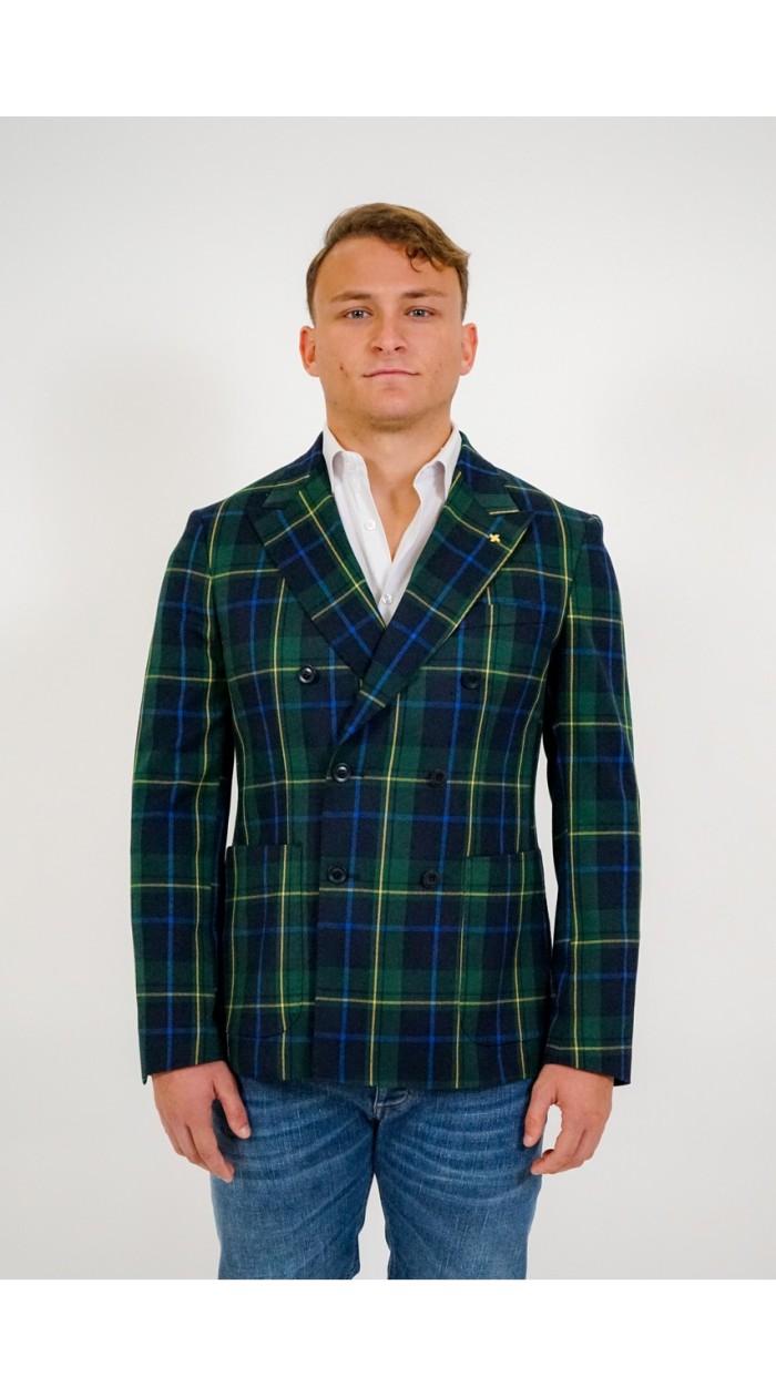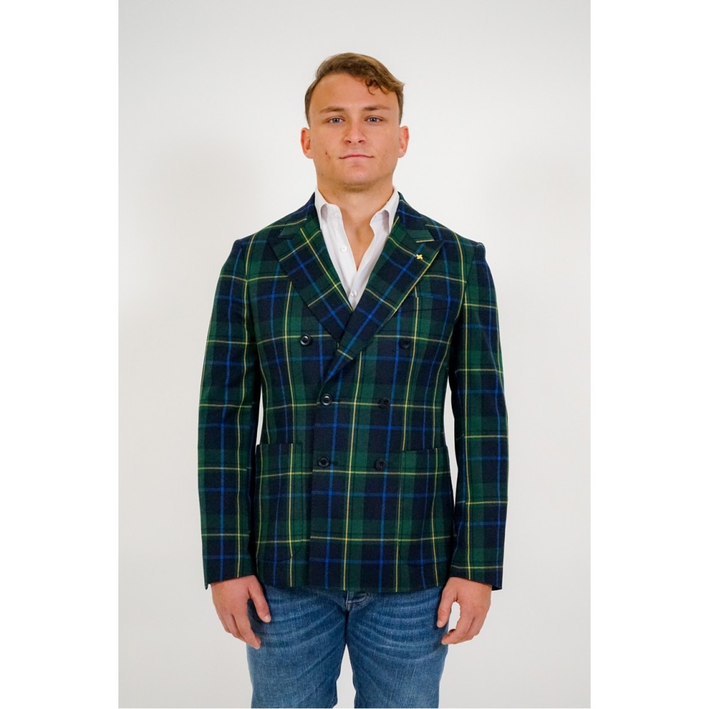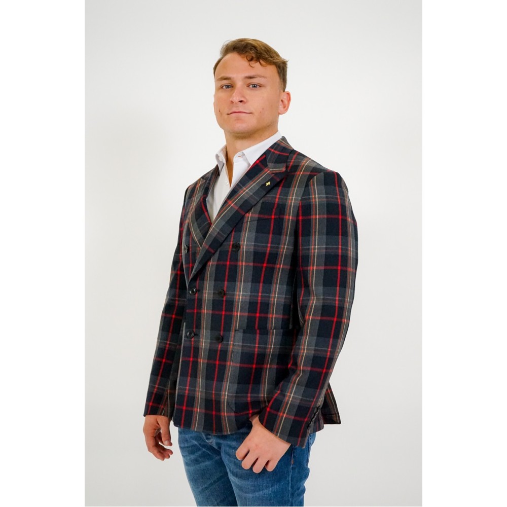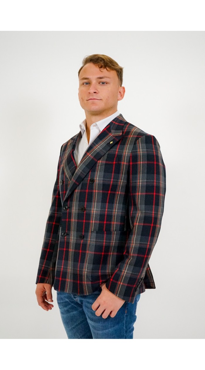 Alessandro Gilles men's double-breasted jacket, checked pattern, slim fit. The model is wearing a size 50.