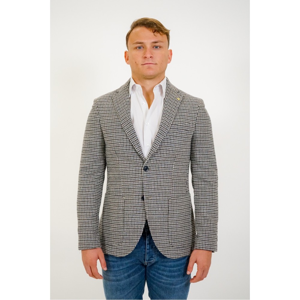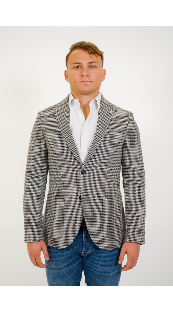 Alessandro Gilles patterned single-breasted men's jacket. Long sleeves, slim fit. The model is wearing size 50.