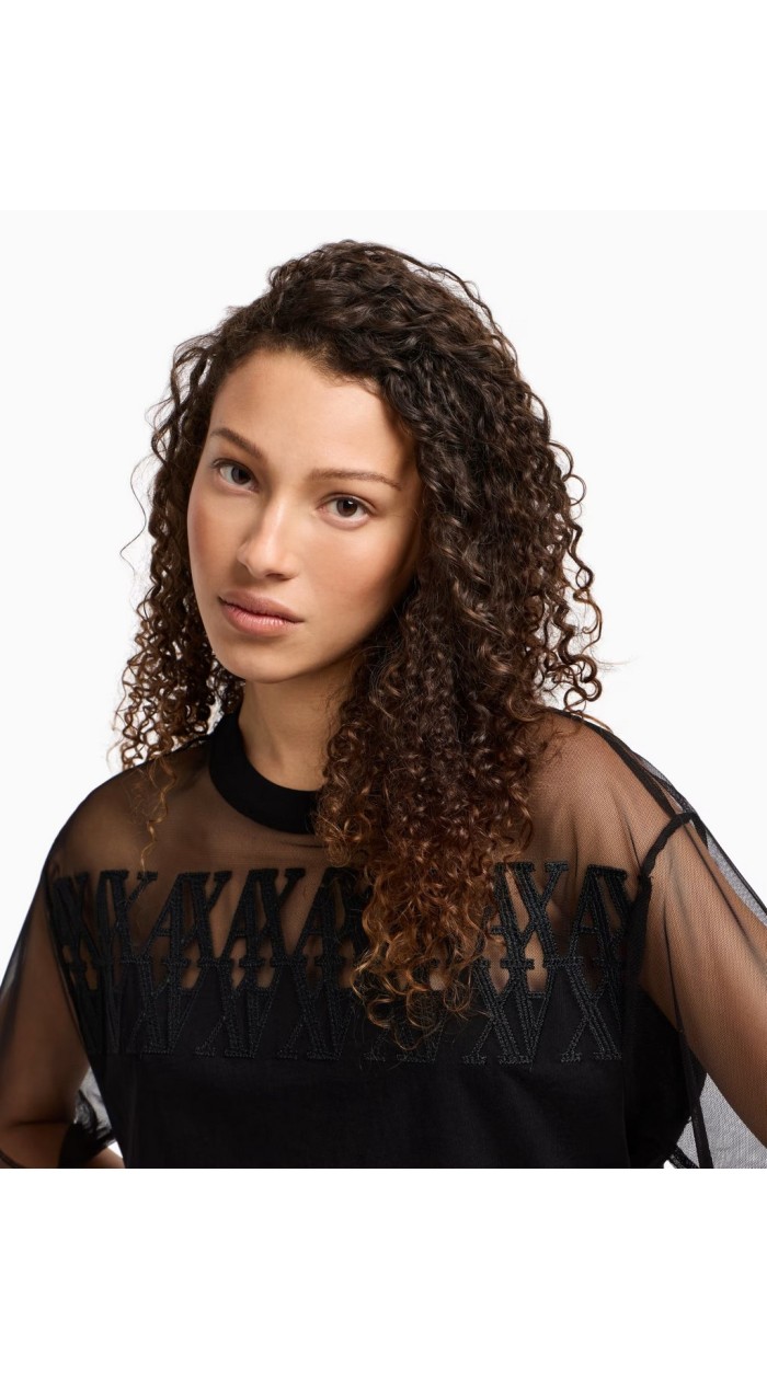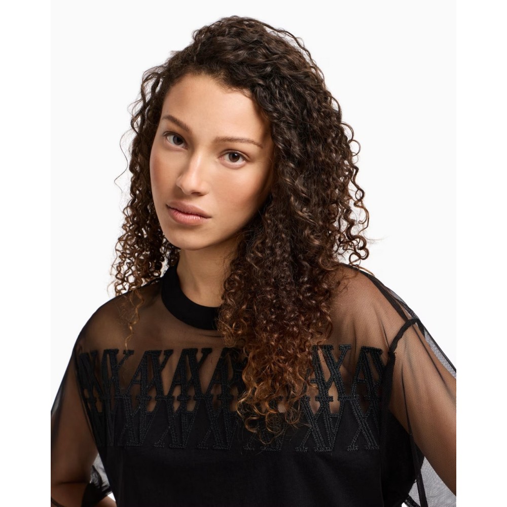 Armani Exchange women's cropped sweater with logo, short sleeve with veil, over fit, crew neck.