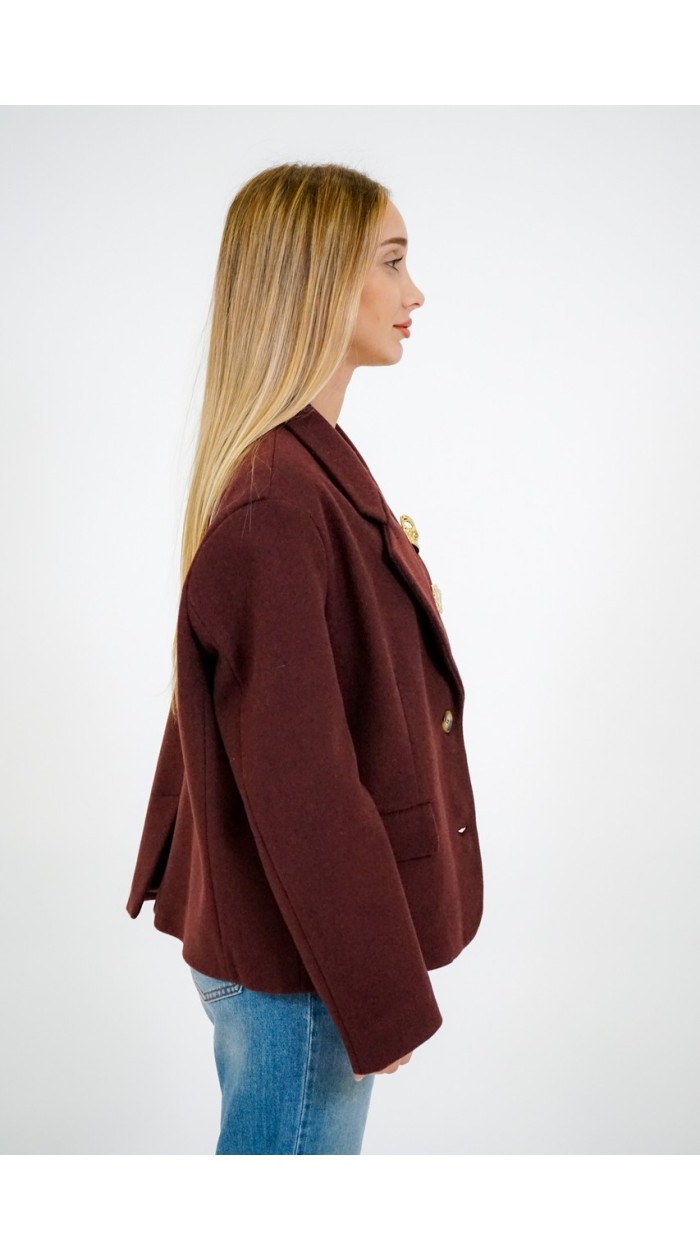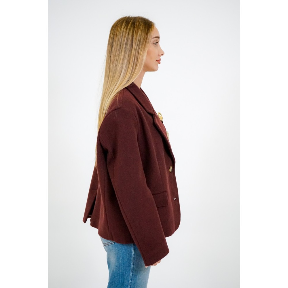 Dixie women's jacket, oversized crop style, single-breasted, welt pockets on the front, brooch detail on the collar.