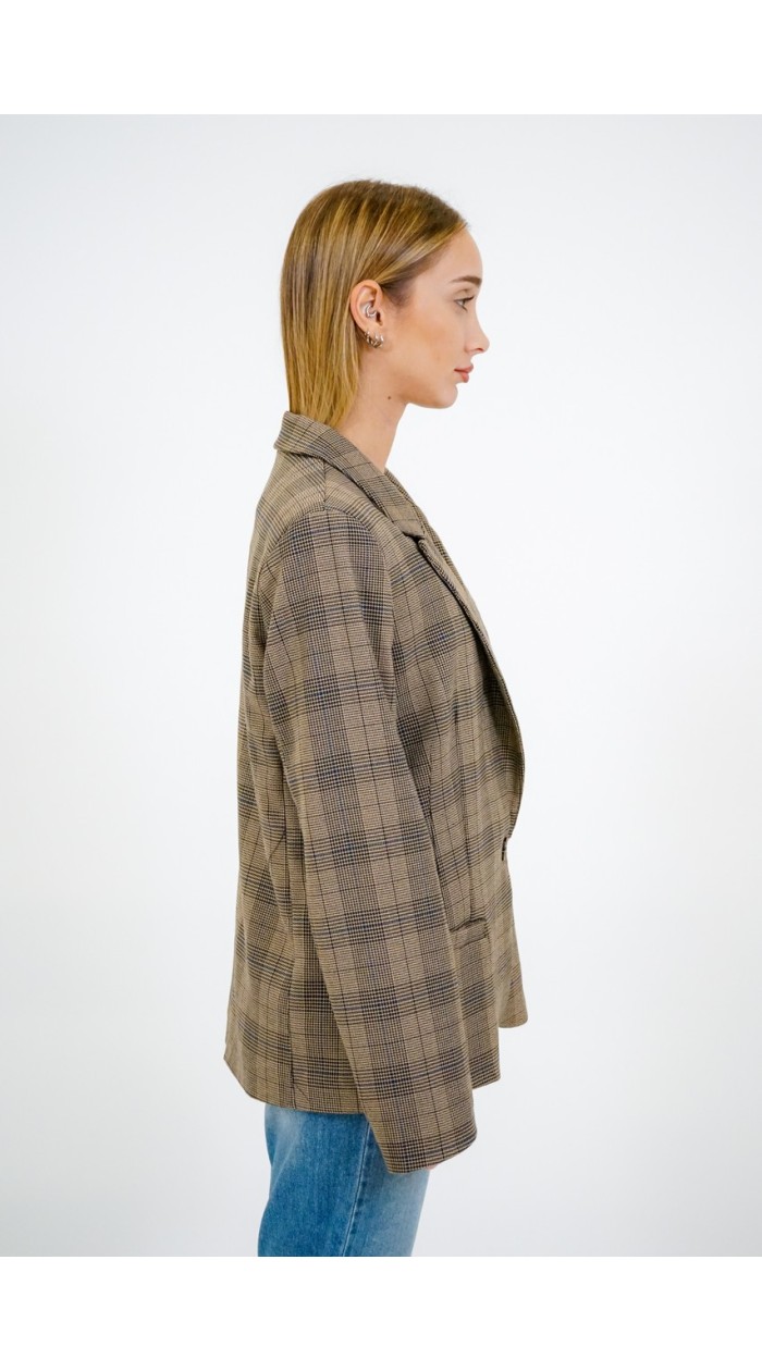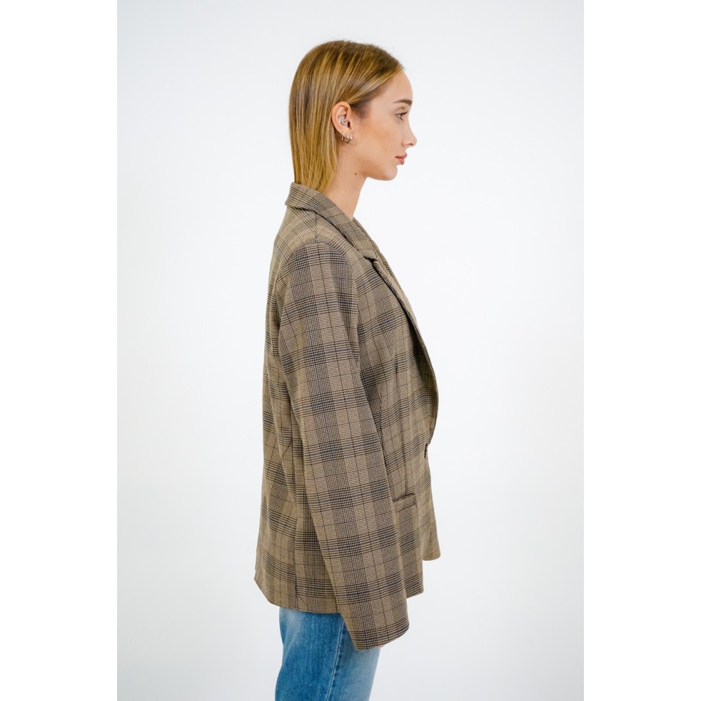 Kontatto women's checked patterned jacket, single-breasted, long sleeves, regular fit. The model is wearing size 42.