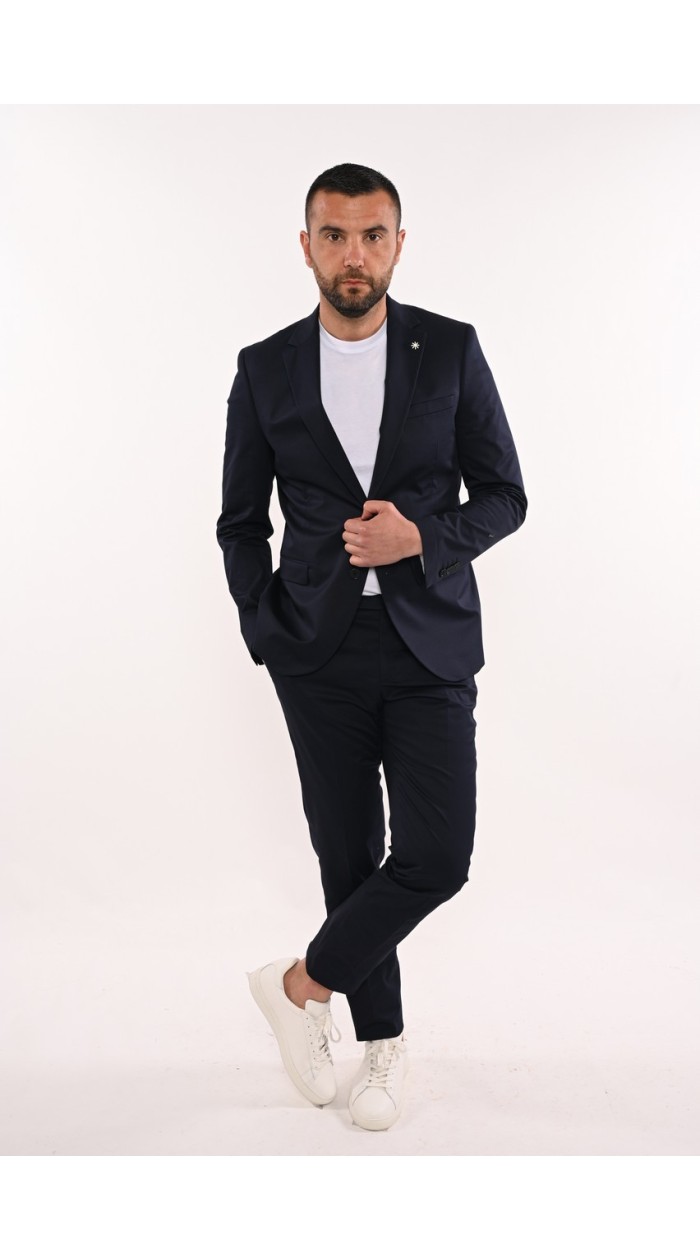 Manuel Ritz men's solid-colored cotton suit, single-breasted.