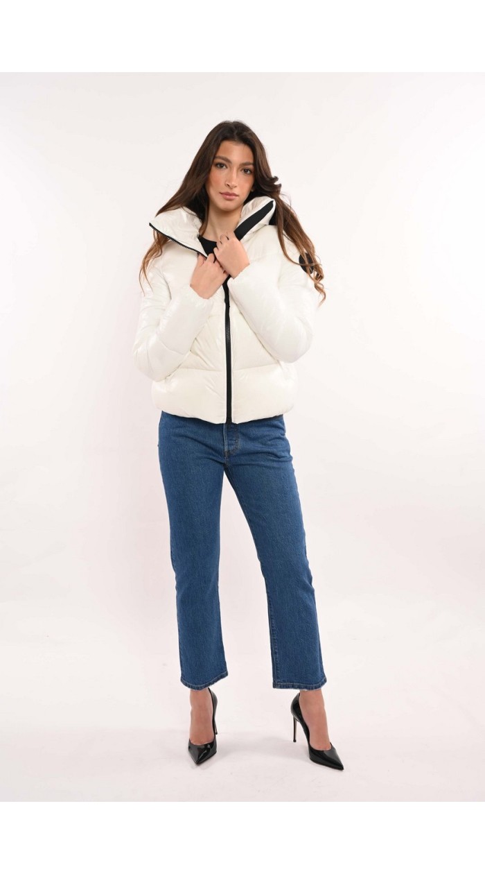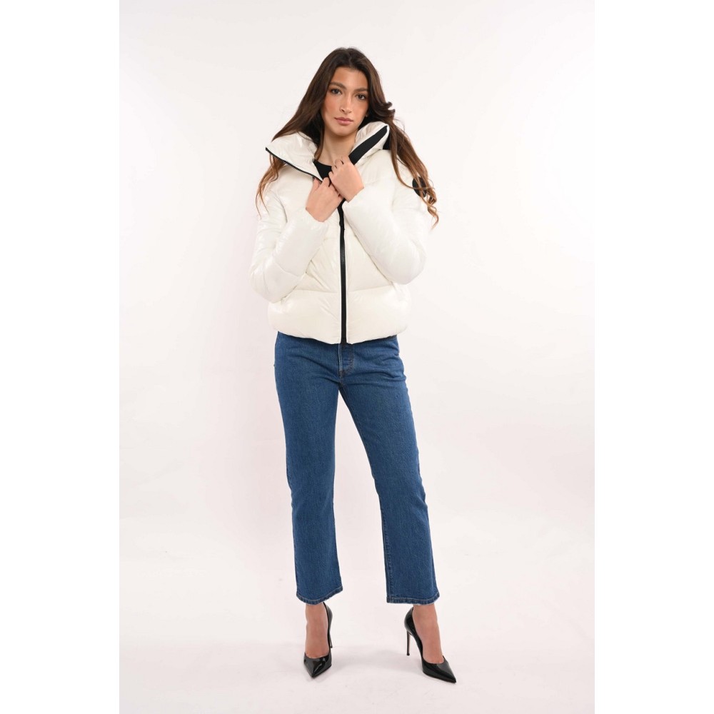 The Isla jacket flies straight into your winter wardrobe thanks to the fabric's laqué finish and high, wrap-around collar. A central zipper, snap buttons that close the pockets and a black-colored logo on the sleeve offer a contrasting note.