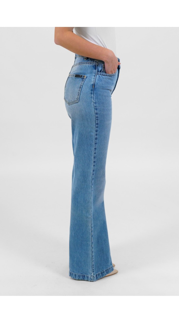 Dixie women's palazzo jeans, light denim, zipper and button closure, 5 pockets, high waist.
