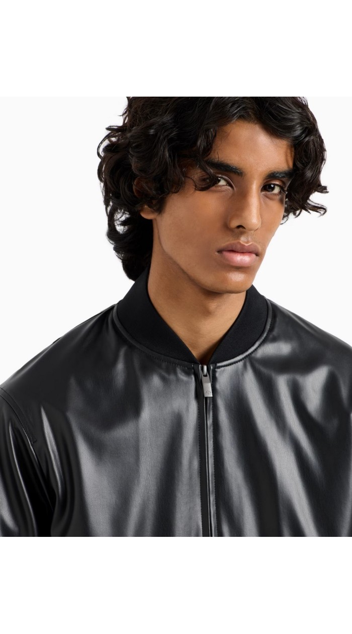 This shiny faux leather jacket combines style and modernity, with a zip fastening accentuating its bold design.