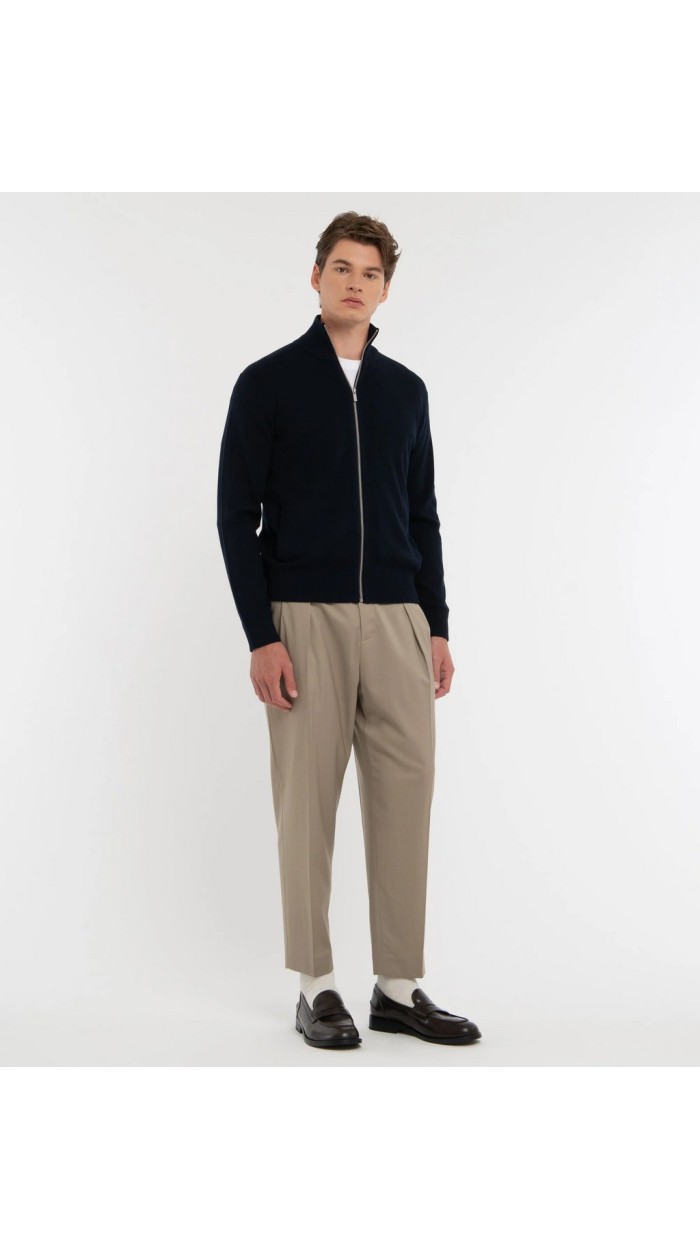 Cardigan with full zip closure, two front pockets, tone-on-tone logo embroidery, ribbed trim. Wool blend knit fabric