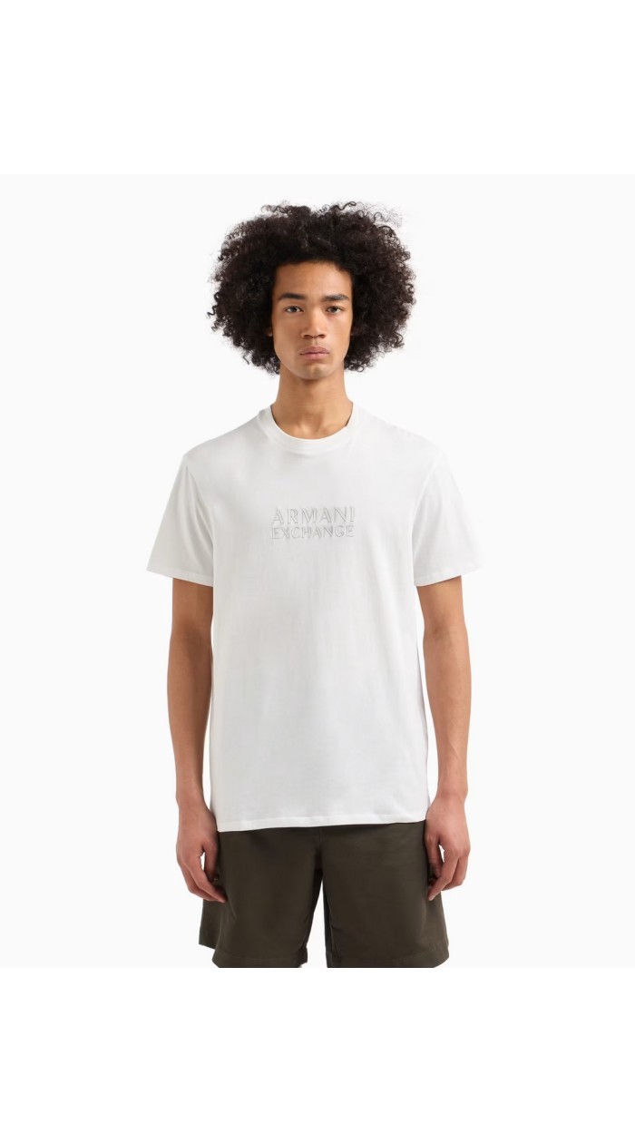 Armani Exchange men's short sleeve allover T-shirt, crew neck, regular fit.