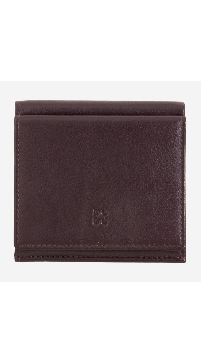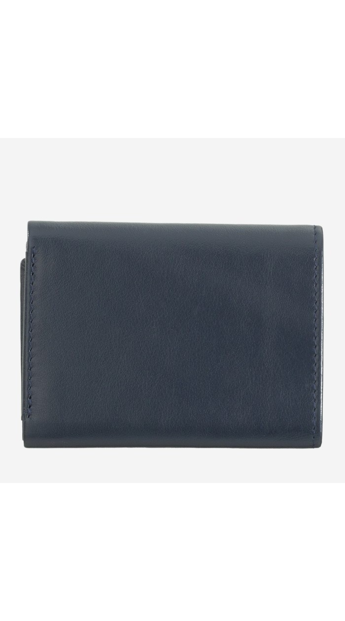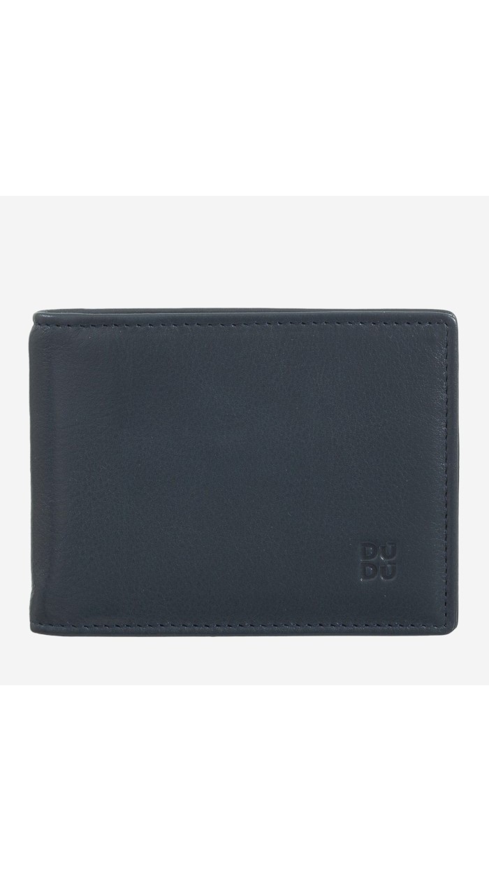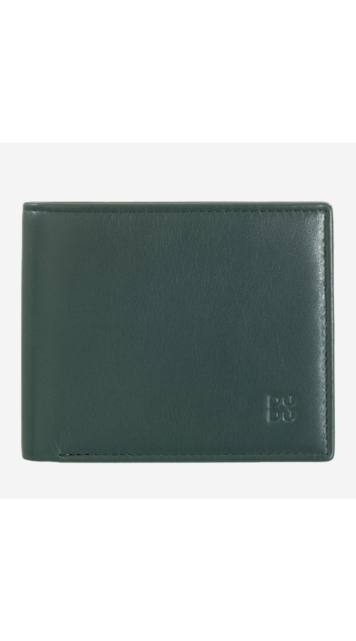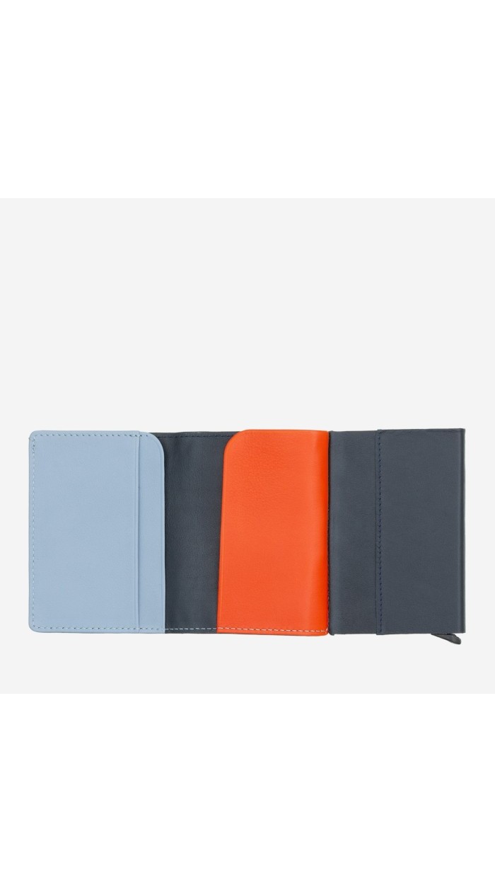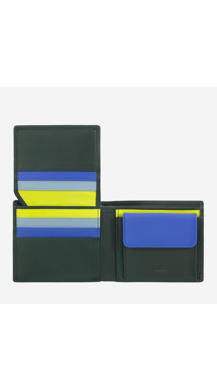 Small RFID men's wallet in genuine soft calfskin leather. Contrast stitching, multicoloured interior and coin pocket.