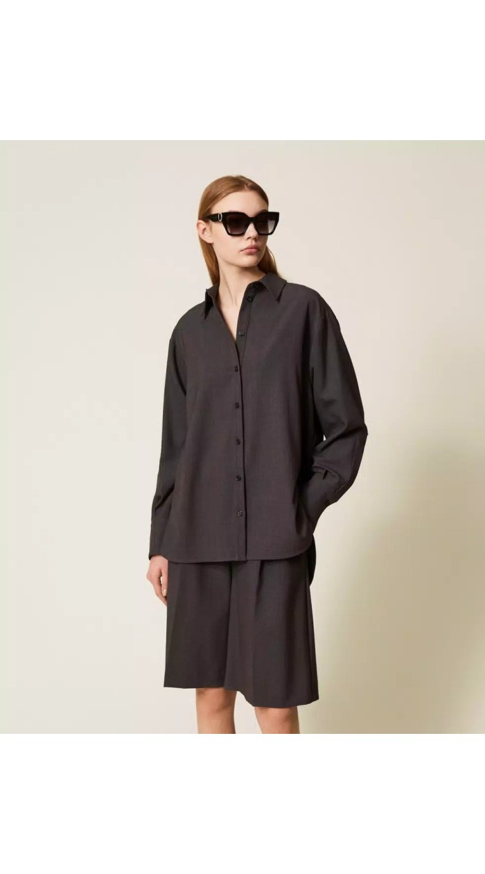 Viscose blend shirt with matching buttons, long sleeves with dropped shoulders, buttoned cuffs, square cut and box pleat at the back, side slits, oversized fit.