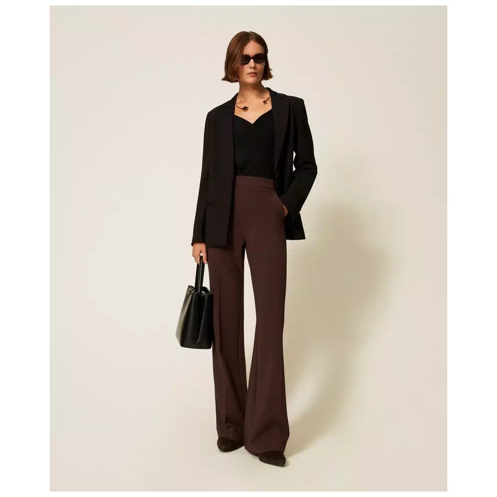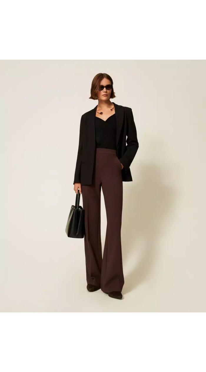 Double crepe pants in viscose blend with invisible side zipper, French pockets, pressed crease, straight leg.
