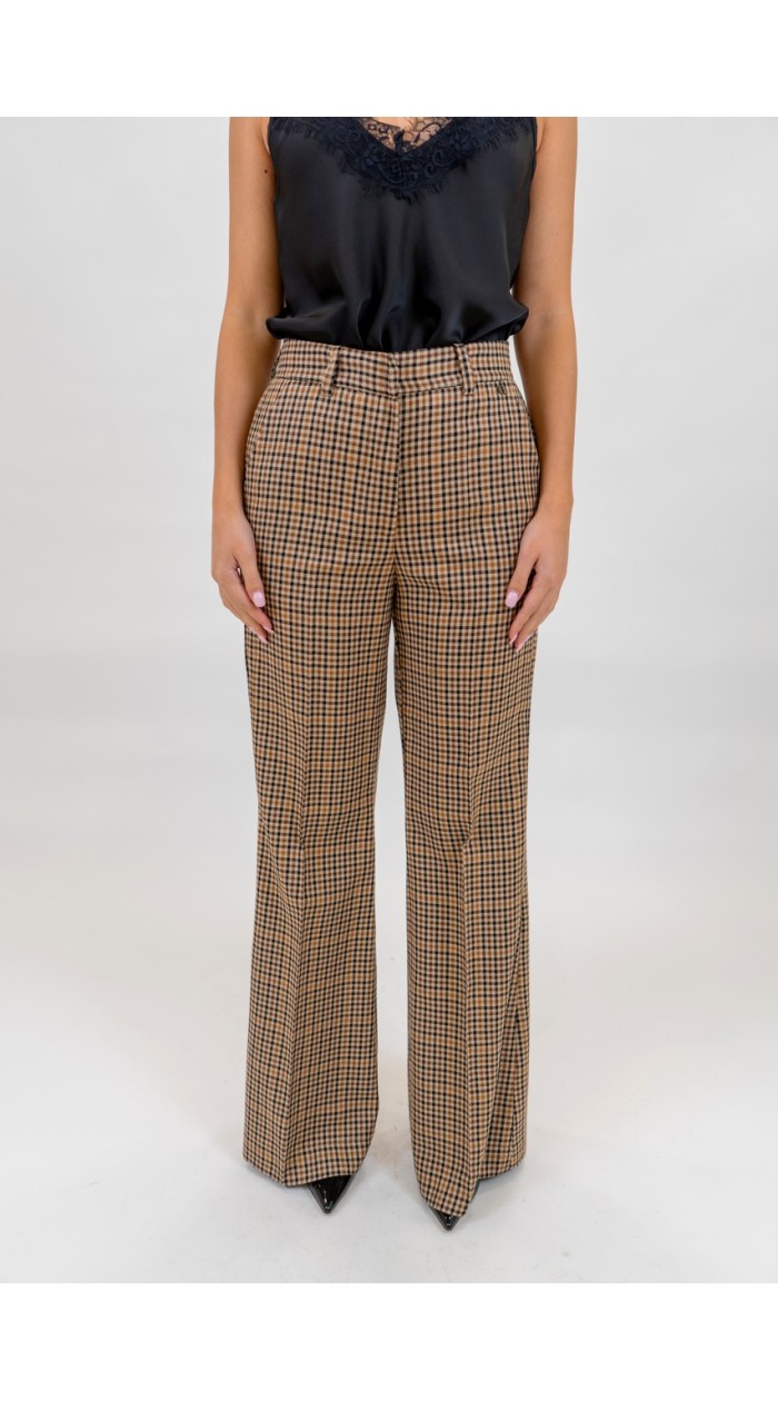 Dixie women's checked trousers, flared style, zip and clip closure, slant pockets, slim fit.