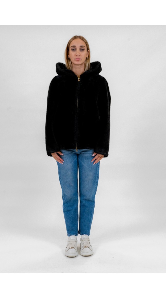 Dixie women's fur coat with fixed hood, short pile, zip closure, regular fit.