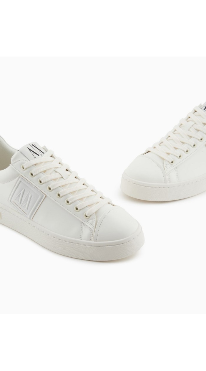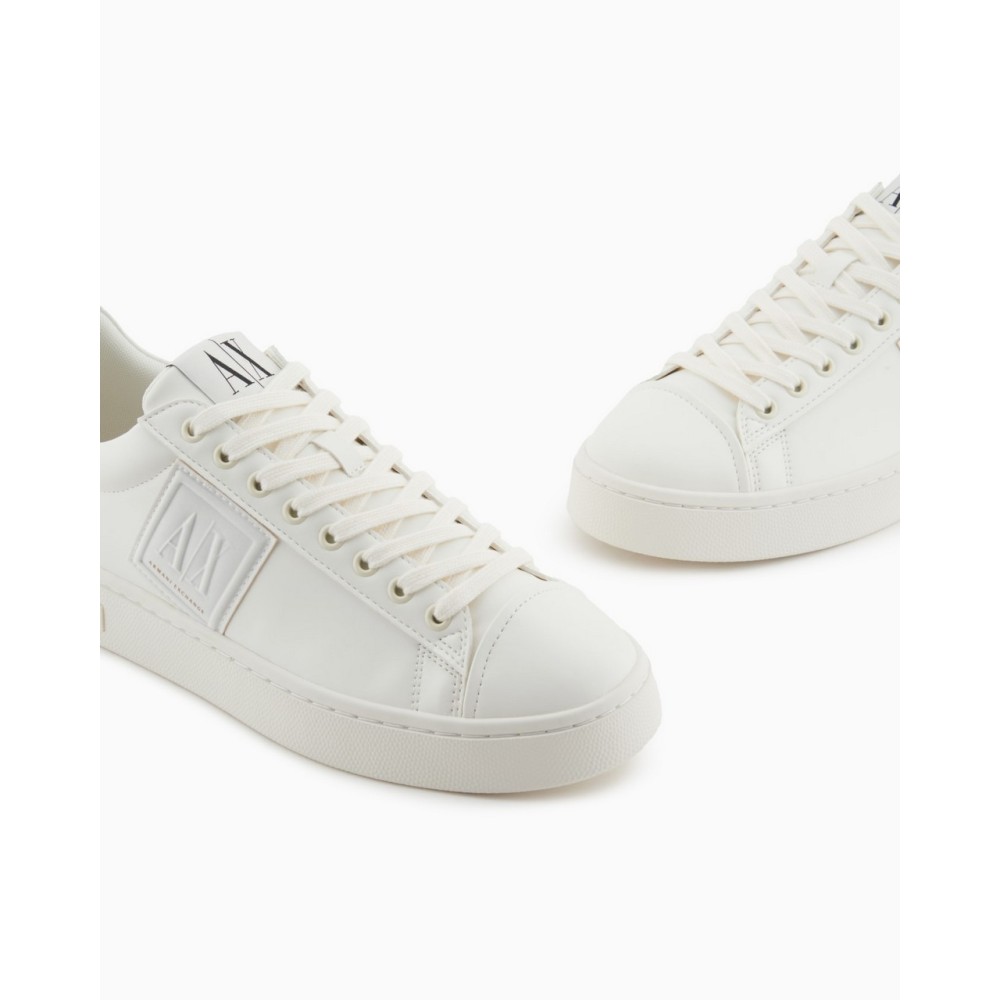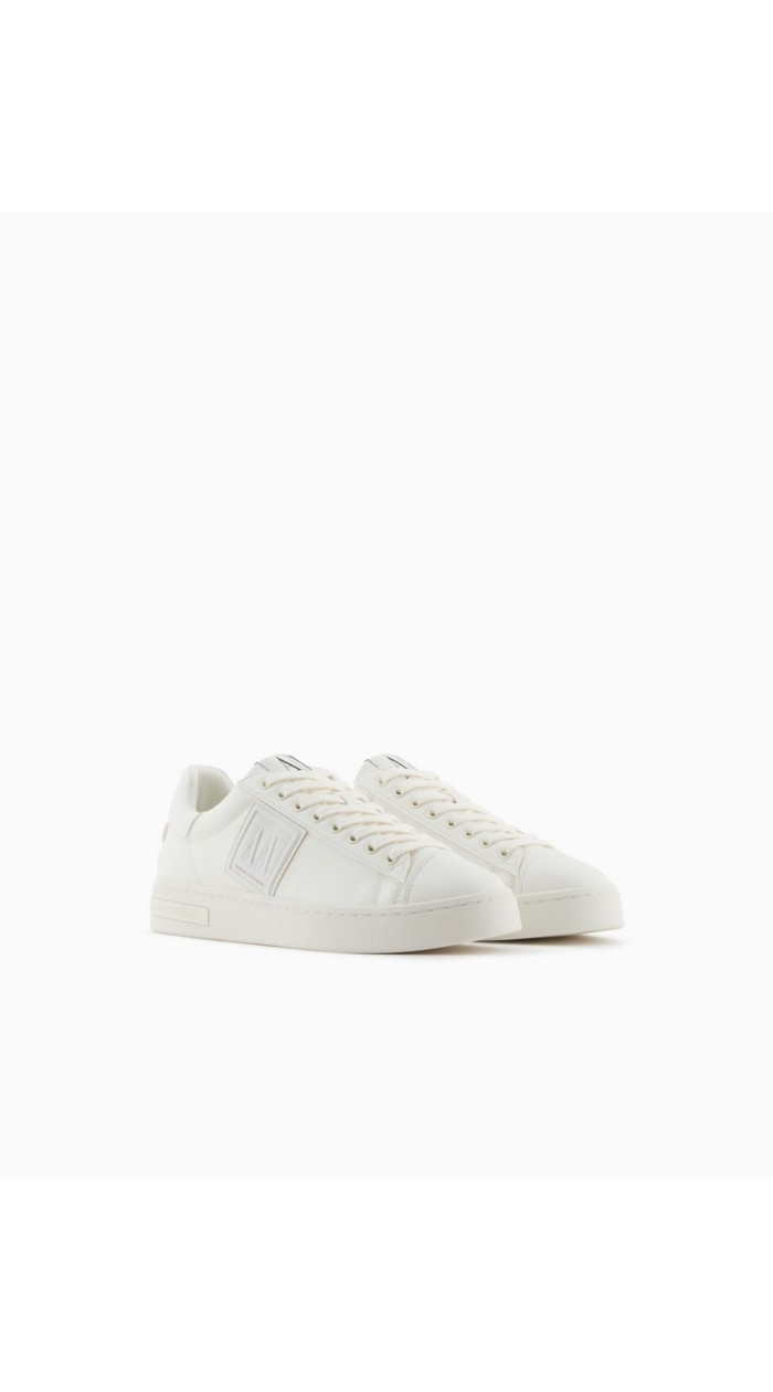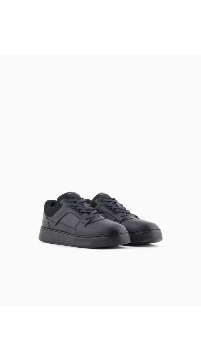 Calfskin leather trainers with mesh details. The Emporio Armani logo is screen-printed on the front of the tongue and on the back tab.