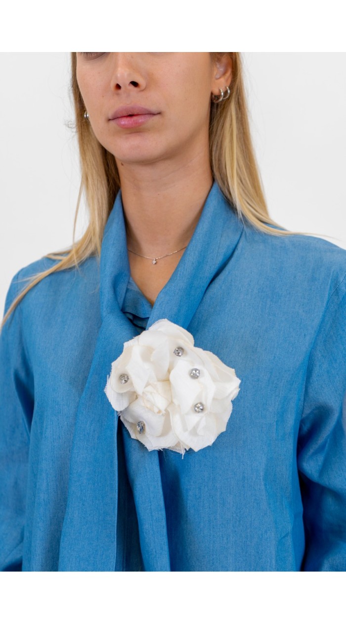Women's denim shirt, long sleeves, fabric flower brooch detail, regular fit.