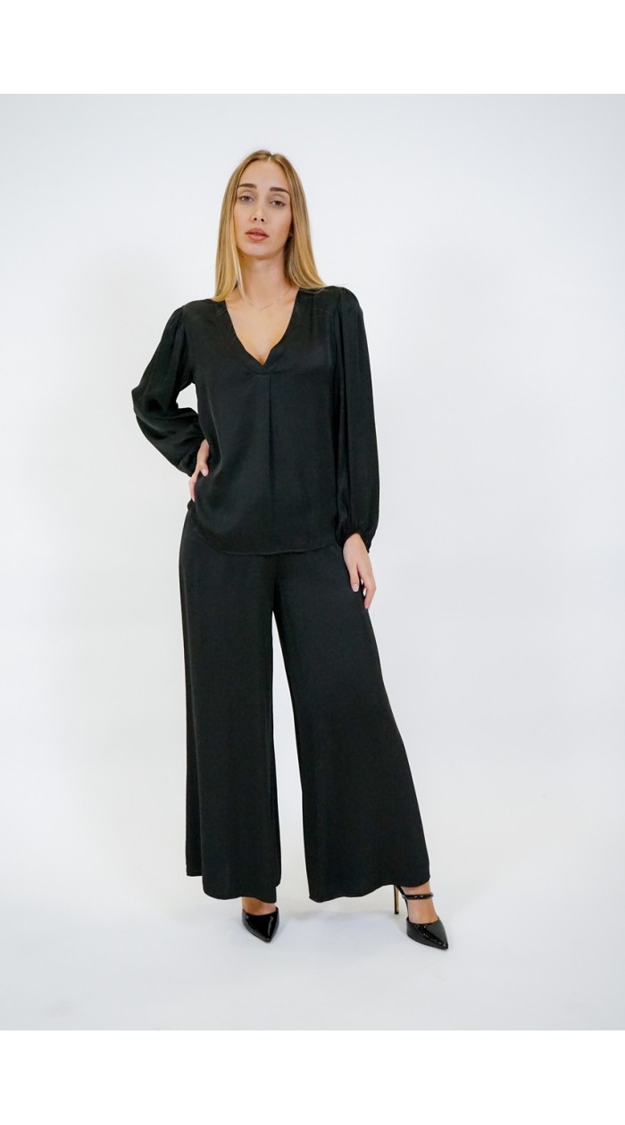 Haveone women's blouse with pointed neckline, silk effect, regular fit, long sleeves.