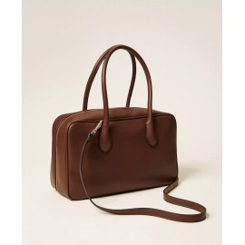 Large satchel bag with a smooth natural nappa calfskin effect.
