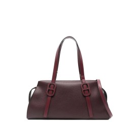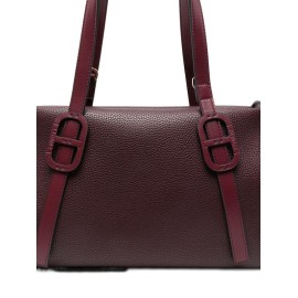 The Twinset shoulder bag with logo features a hammered texture, two handles, logo detail, top zip closure, and shoulder strap. The composition is 100% fabric.