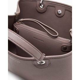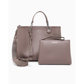 Medium-sized shopper bag with deer print finish, magnetic closure, and screen-printed logo. Item embellished with logoed snap hooks and tag matching the bag, removable and with embossed logo lettering. Equipped with a matching internal pouch with zip and removable logo shoulder strap. This item belongs to the MyEA line, Emporio Armani's range of iconic and exclusive bags that best represent the Maison. Choose the model and complete it with the accessories from the line that best reflect your style.
