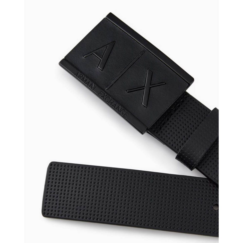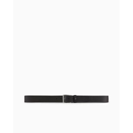 Armani Exchange belt made of worked leather and featuring a rectangular buckle with tone-on-tone embossed logo.