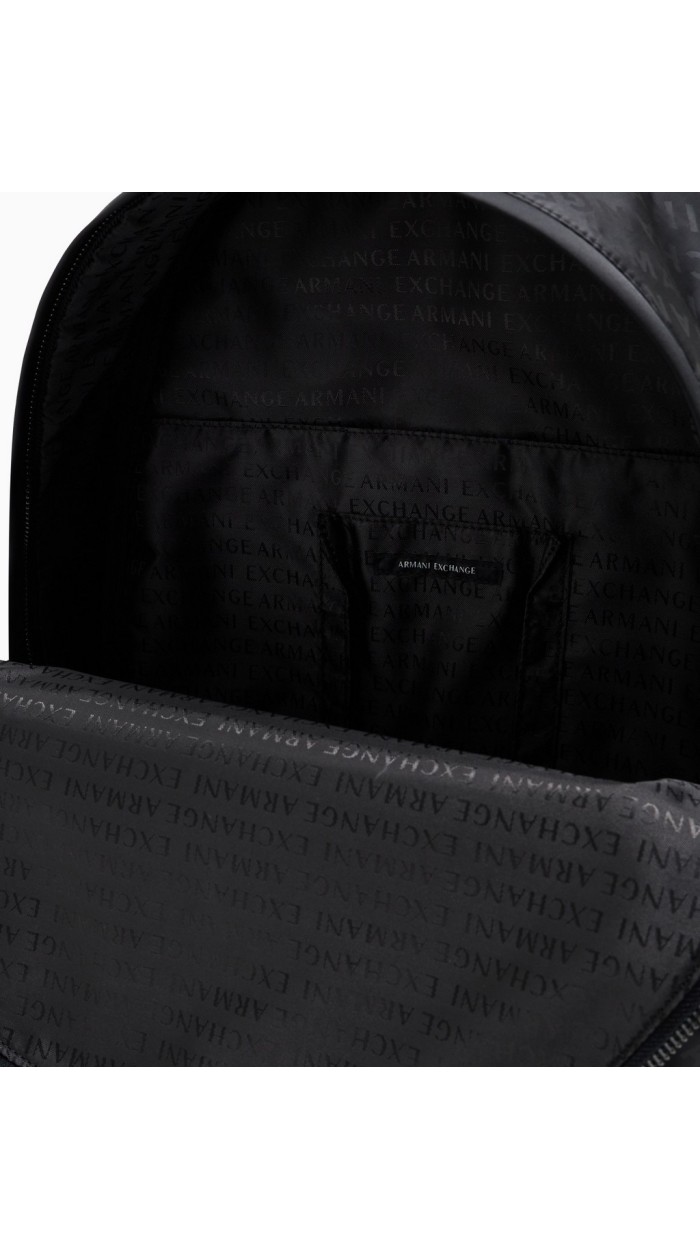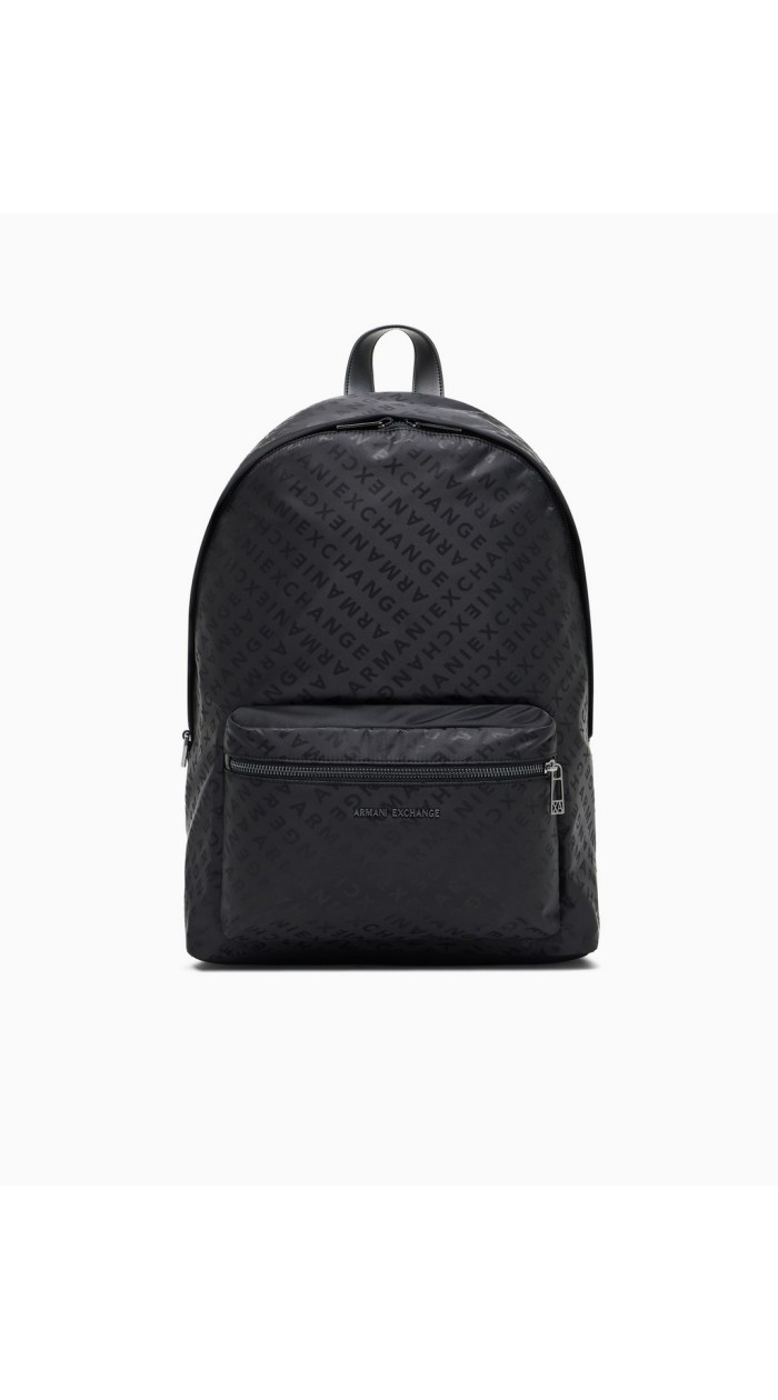 Backpack made from durable material, featuring a bold all-over embossed logo pattern that makes it a real statement piece.