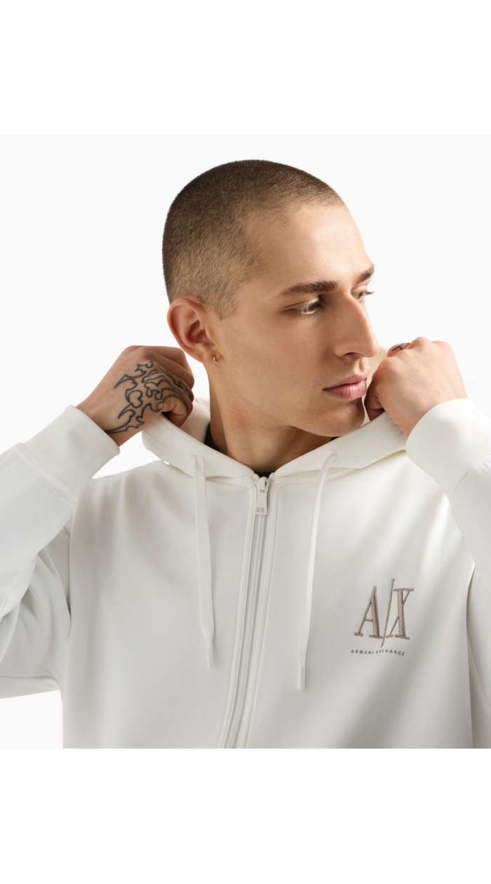 Armani Exchange unisex zipper and hoodie, logo on front, long sleeve, regular fit.