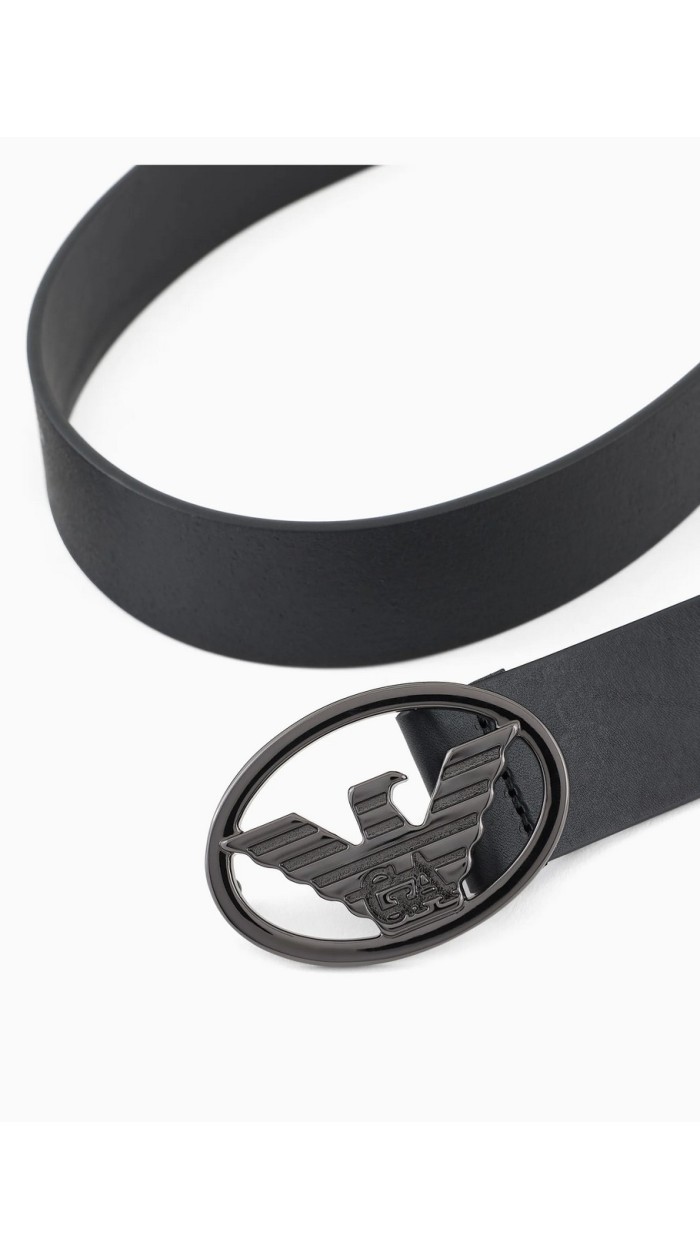 Belt made of smooth-finish cowhide leather, featuring a shaped eagle plaque. A distinctive accessory that complements multiple outfits.
