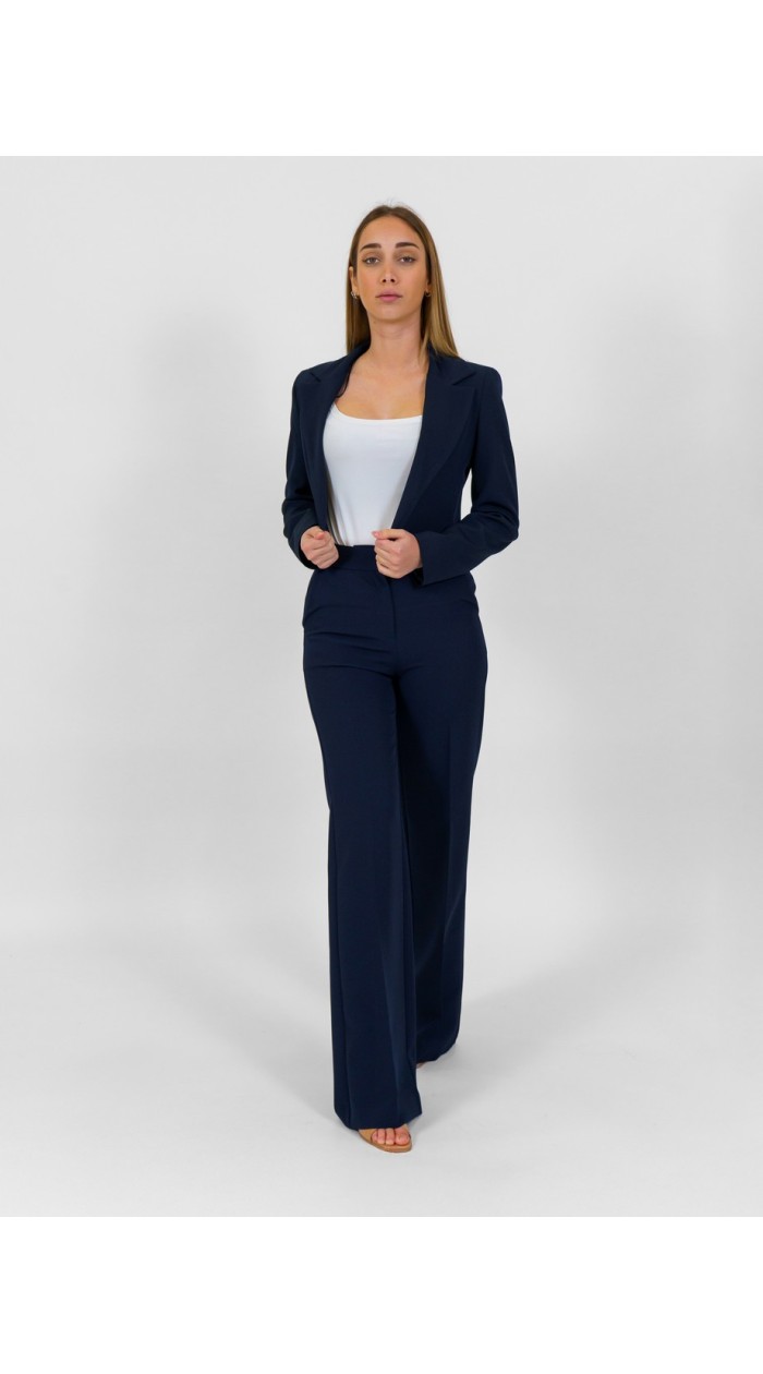 Maryley women's palazzo trousers, solid colour, welt pocket, clip and zip fastening, high waist.