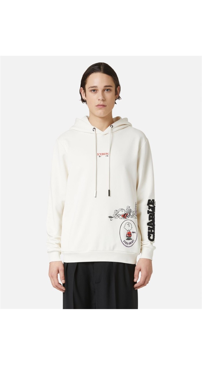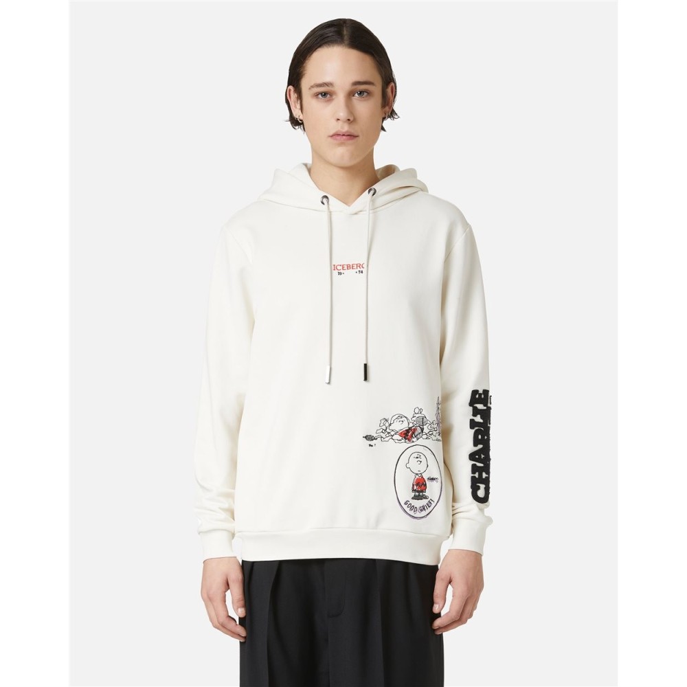 Slim fit hoodie in vanilla-colored cotton, featuring a Fridge print on the center front and the Iceberg logo integrated into the graphic.