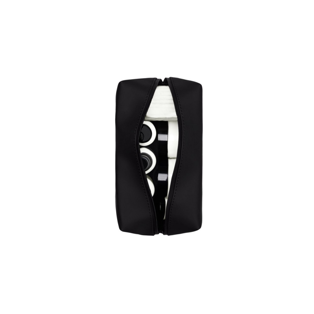 The Wash Bag Small features a soft, square design with a single compartment. The waterproof design is finished with a coated zipper and a carrying handle.