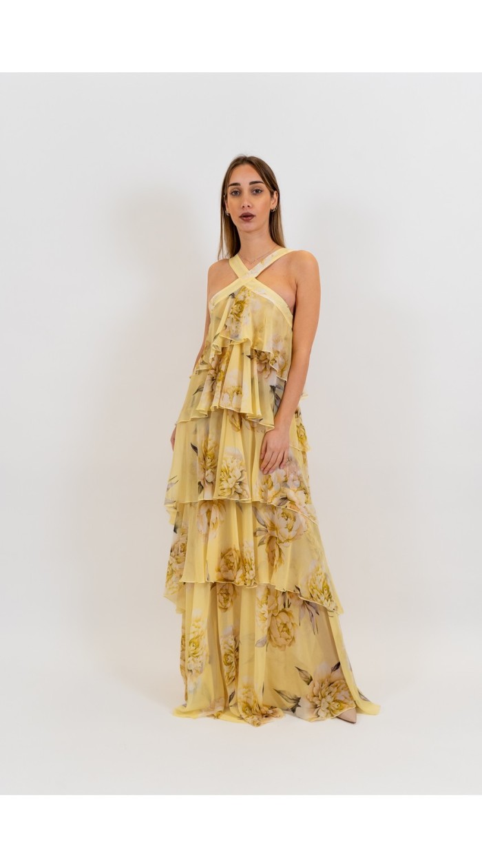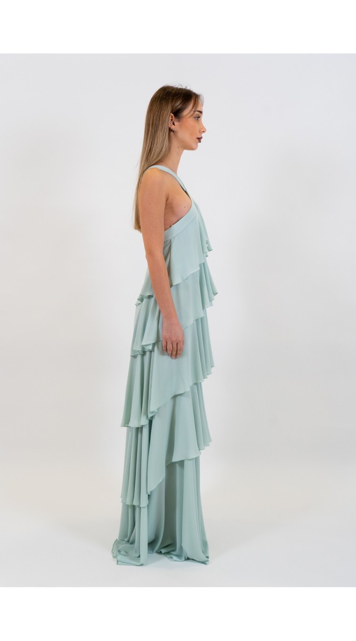 Silence Limited women's long ruffle dress, regular fit, plain, deep neckline at the back.