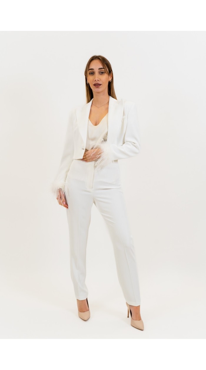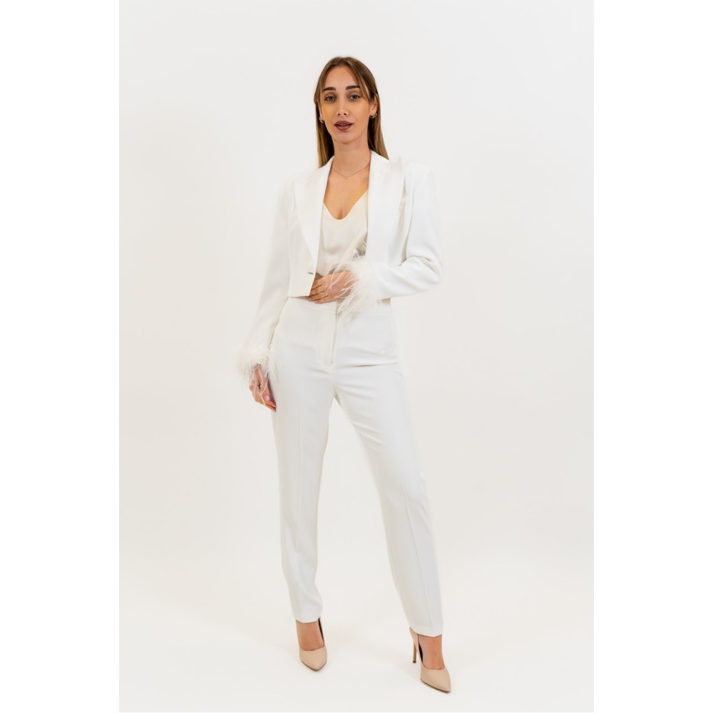 Silence Limited women's crop blazer, feather sleeves, solid color, slim fit. The model is wearing size XS.