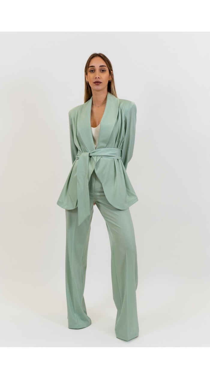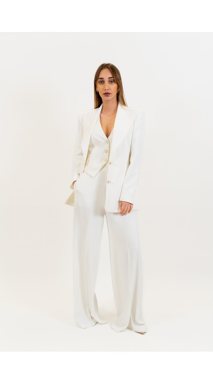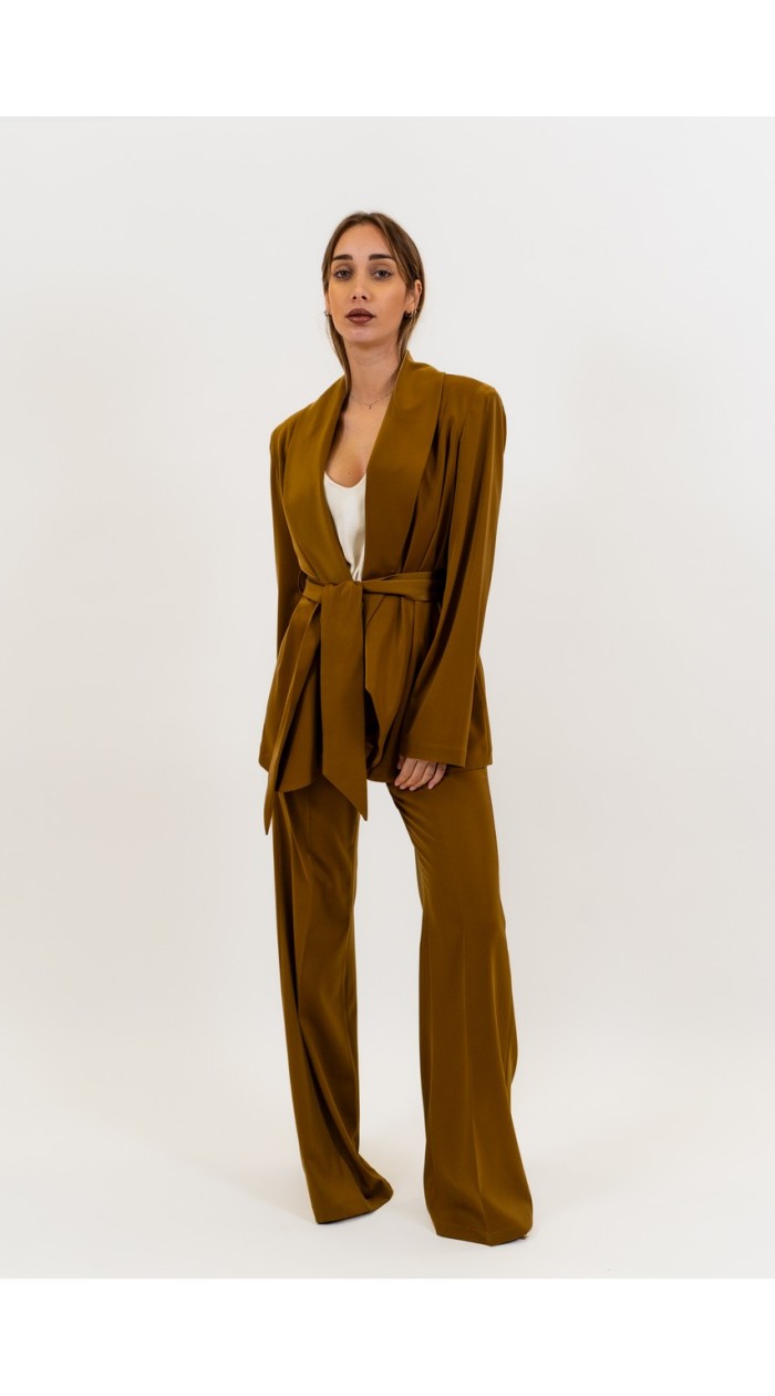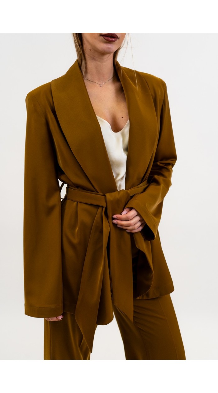 A sophisticatedly tailored blazer crafted from a flowing satin fabric with a smooth finish. The design features a wide shawl lapel that elegantly frames the neckline and creates a soft, feminine silhouette.