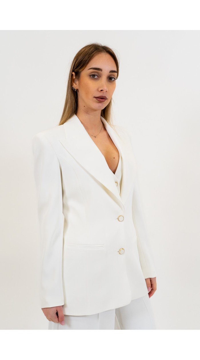 Silence Limited solid-color women's jacket: single-breasted, long sleeves, two contrasting buttons, regular fit. The model is wearing size XS.
