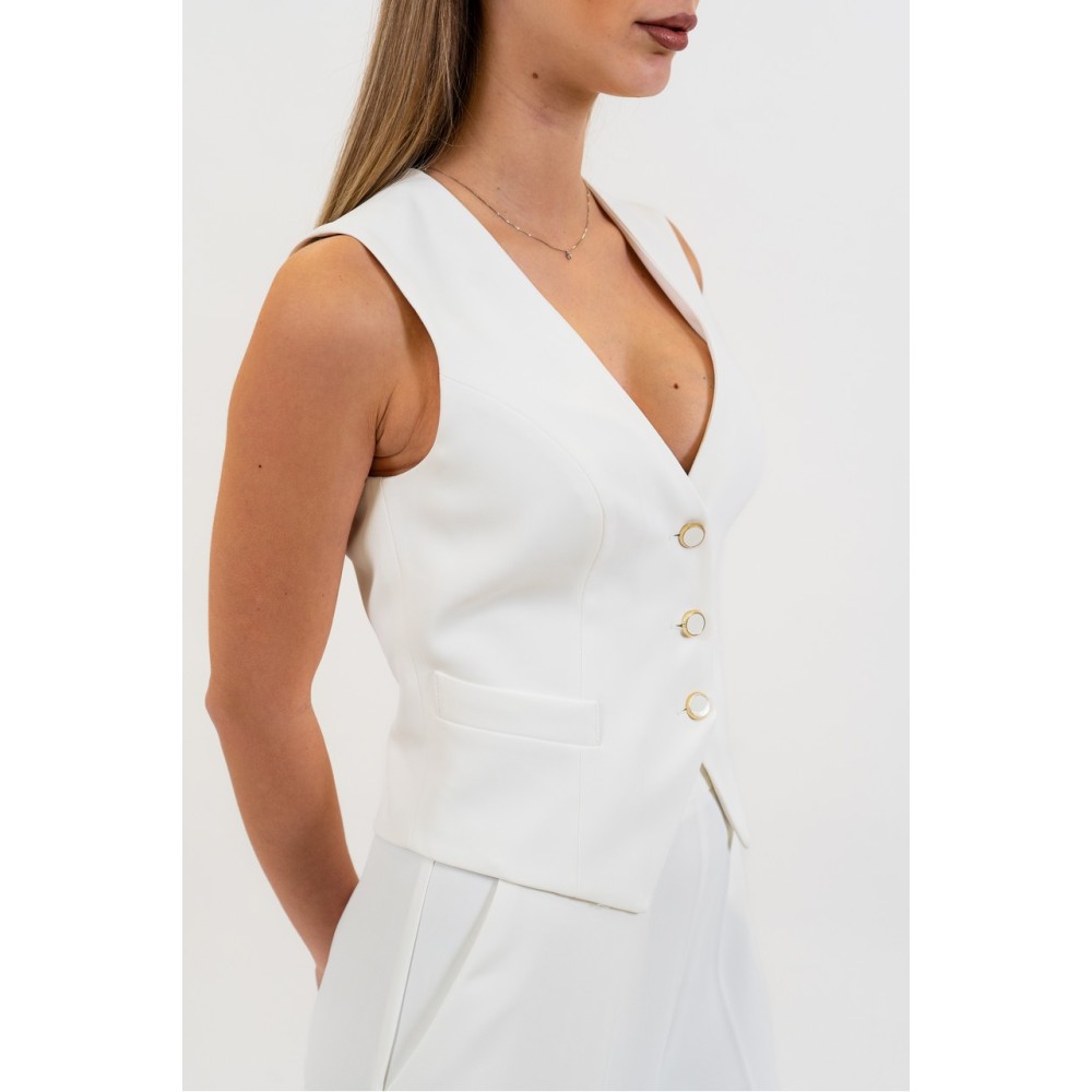 Silence Limited women's vest with contrasting buttons, slim fit, solid color; the model is wearing size XS.