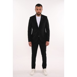 Manuel Ritz men's solid-color, single-breasted suit. Jacket with two-button closure, two flap pockets on front, breast pocket with removable clutch. Slim fit pants with two America pockets on front and two welt pockets on back, zipper and button closure.
