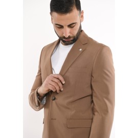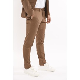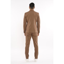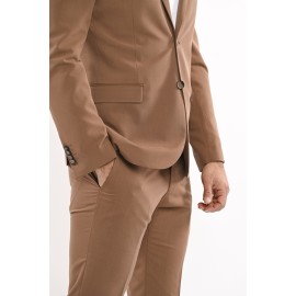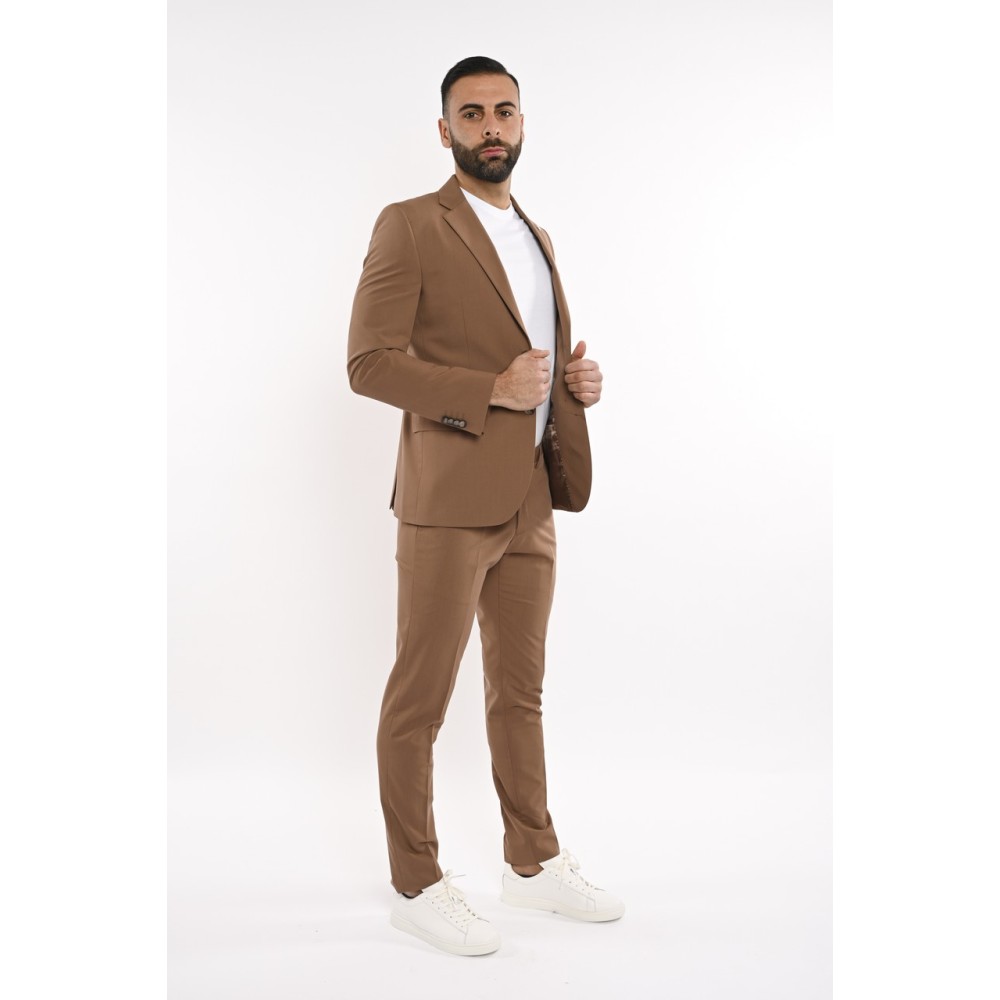Manuel Ritz man suit drop 8 plain. Jacket: single breasted, flap pocket, two button closure. Trousers: front America pocket, back welt pocket, hook, button and zip fly. The model wears size 48.