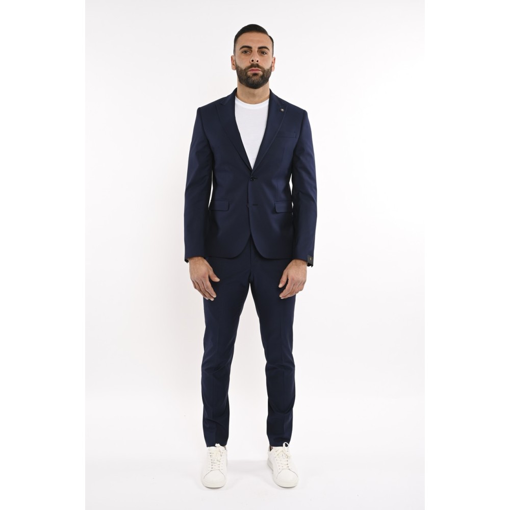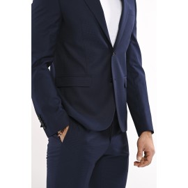Manuel Ritz drop 9 patterned suit. Jacket: single breasted, two button closure, flap pocket. Trousers: slim fit, front America pocket, back welt pocket, zip, button and hook fastening. The model wears size 48.