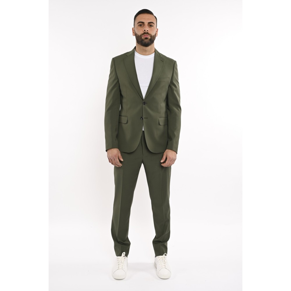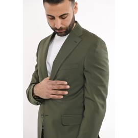 Solid colour Alessandro Gilles man suit. Jacket: single breasted, flap pocket, two button fastening. Trousers: slim fit, zip, button and hook fastening.