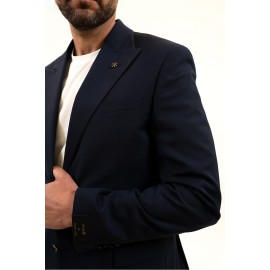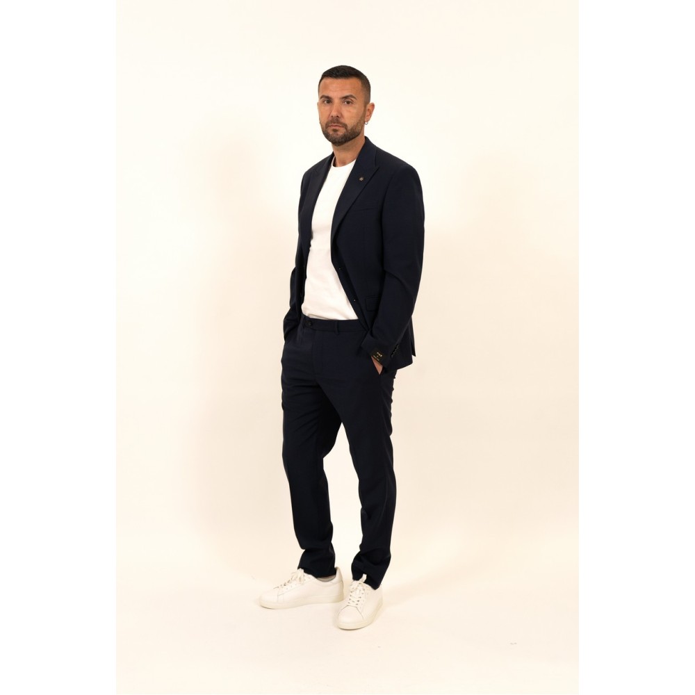 Manuel Ritz solid colour men's suit. Jacket: single breasted jacket, solid colour, spread collar, regular fit. Trousers: plain trousers, solid colour, button and zip fly. Model is wearing size 50.