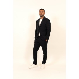 Manuel Ritz solid colour men's suit. Jacket: single breasted jacket, solid colour, spread collar, regular fit. Trousers: plain trousers, solid colour, button and zip fly. Model is wearing size 50.