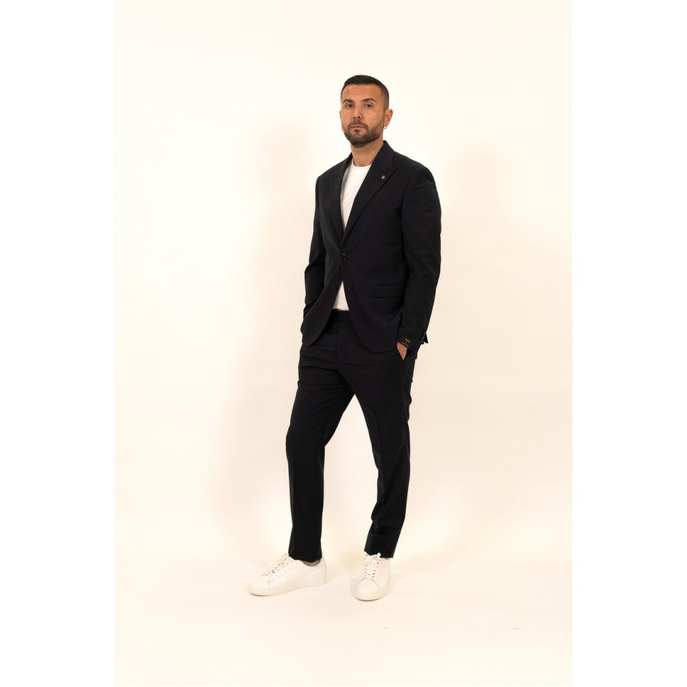 Manuel Ritz solid-coloured men's suit. Jacket: single breasted jacket, solid colour, spread collar, regular fit. Trousers: plain trousers, solid colour, button and zip fly.